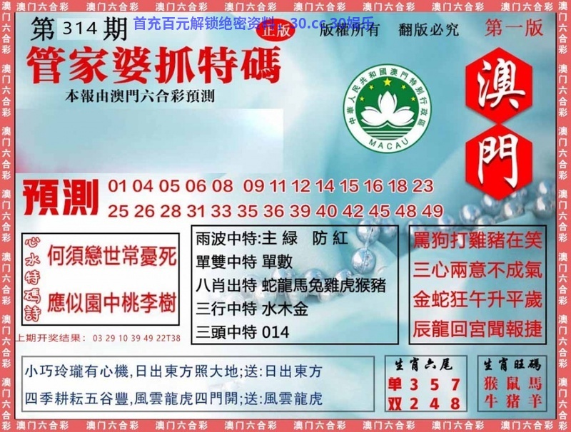 314期:九肖(马虎兔牛蛇鸡狗龙)开羊23